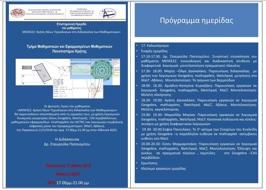 ΜΕΜ-322 Χρήση νέων τεχνολογιών στη διδασκαλία των Μαθηματικών (Εαρινό 2018)