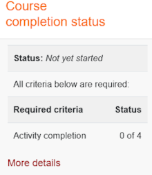 Βεβαιωθείτε ότι στο Course completion statusόλες οι απαιτήσεις λένε  "Yes"στη στήλη Complete. Εάν ναι τότε είστε ΟΚ και δεν χρειάζεται να κάνετε κάτι άλλο (ούτε χρειάζεται να μου στείλετε μήνυμα ρωτώντας με "χρειάζεται να κάνω κάτι άλλο;").